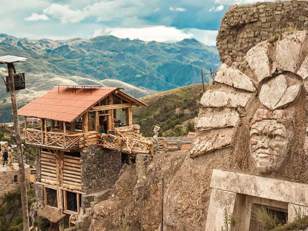 La Morada de los Dioses es un parque temático cultural con esculturas monumentales talladas en piedra por artistas locales, que representan a dioses incas, la Pachamama y los Apus andinos.